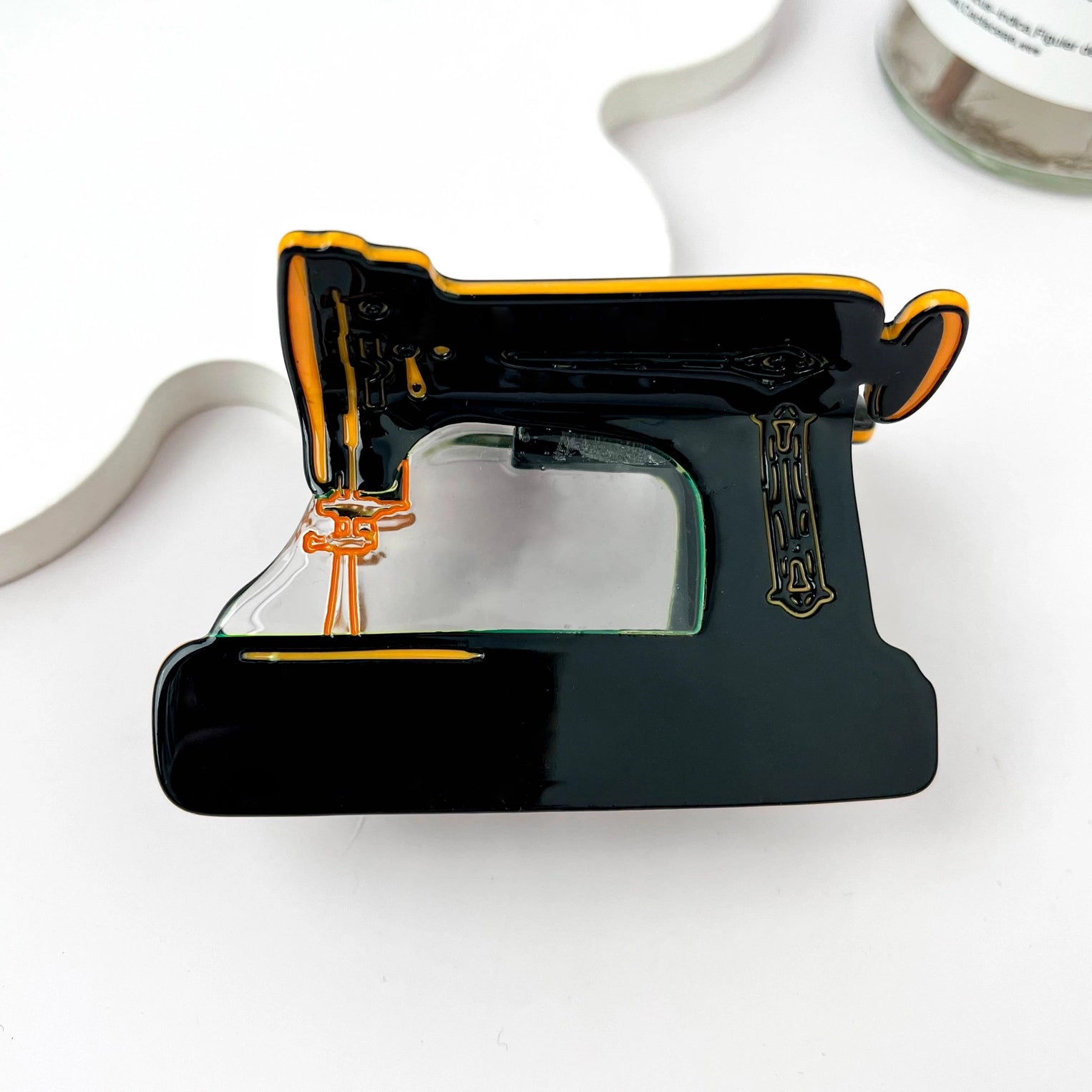 Bring a touch of retro charm to your hair with this Vintage Sewing Machine Acetate Hair Claw Clip. Designed to capture the nostalgic beauty of a vintage sewing machine, this unique hair accessory combines creativity and craftsmanship. Ideal for sewing enthusiasts or anyone who loves quirky, retro-inspired accessories, this clip adds an artistic flair to any hairstyle while offering a secure hold.