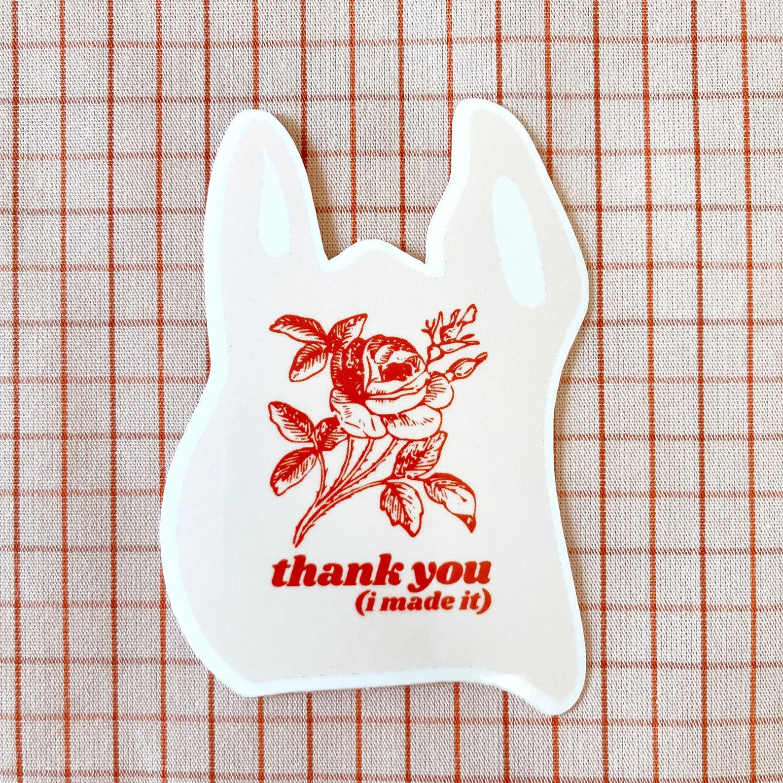 Professionally printed vinyl sticker. For anyone who loves answering the question “where did you get that?” with “thank you! I made it!”. Measures approximately 2 by 3 inches. The perfect size for sticking on your sewing machine, laptop, or water bottle.